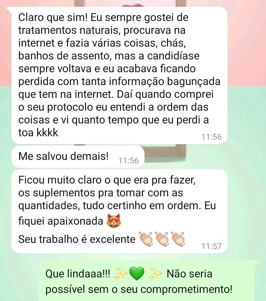 Com anos de experiência na área da saúde integrativa, desenvolvi o protocolo Candidíase, Não! para atender uma necessidade urgente que eu vi em muitas mulheres: resolver de vez a candidíase e outros problemas relacionados à síndrome fúngica, de forma segura, prática e sustentável.