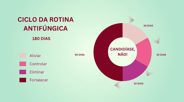 Trata-se de uma rotina antifúngica diária, composta por recomendações de hábitos que acabam com o supercrescimento fúngico, recomendações alimentares, de fitoterápicos e suplementos para o ciclo antifúngico completo de 180 dias.